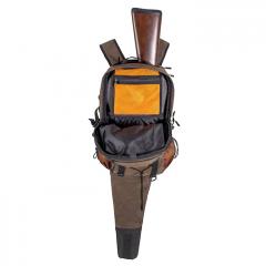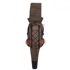 Reppu kiväärisuojalla. Mukana tuleva 5etta-lintupussi voidaan kiinnittää sitä varten tarkoitettuihin D-renkaisiin repun ulkopuolelle. Kiväärisuojaan mahtuu suurin osa kiikaritähtäimellä varustetuista aseista, joiden pituus on enintään 130 cm. Suoja taittuu kätevästi repun sisään, kun sitä ei käytetä. Kahvat sivulla ja yläpuolella. Suuri istuinalustalla varustettu sisätasku, jonne sopii myös vaikka kannettava tietokone.
