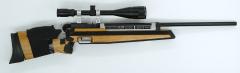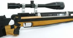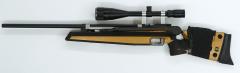 Sivuviritteinen kilpailuilmakivääri vasenkätiselle ampujalle.