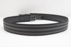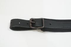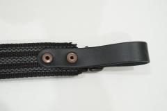 Asehihna mustaa nylonia, mustalla nahkayksityiskohdalla ja kumitetulla alapinnalla