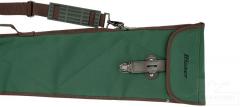 Blaser asepussi kantokahvalla. Asepussin päässä läpällinen suljenta, myös lukko mukana. Säädettävä ja irroitettava asehihna. Läpässä Blaserin logo.