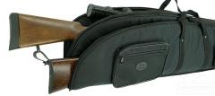 Franzenin musta ja topattu kivääripussi kahdelle kiväärille on valmistettu erittäin kestävästä polyesterinailonista.Tarviketasku ja olkahihna. Vetoketjut lukittavissa riippulukolla.