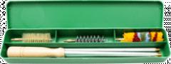 Haulikon puhdistussarja 16 kaliiperin haulikolle. Jäykkä 3-osainen alumiinivarsi, jossa kolme erilaista harjaa (terässpiraaliharja, öljyharja, villaharja). Kaikki välineet siistissä muovilaatikossa.