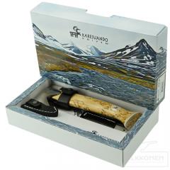 Karesuandon Jaktyxa -kirves on taidokas käsityönäyte ruotsalaiselta laatuvalmistajalta. Kirveen terä on karkaistua ruostumatonta terästä (HRC55), ja varsi on valmistettu öljytystä visakoivusta sekä poronsarvesta. Tuppi on vahvaa naudannahkaa. Tupen saa kiinnitettyä vyölle, joten kirves kulkee helposti mukana ja on nopeasti otettavissa käyttöön. Kirves toimitetaan lahjalaatikossa, joka sisältää myös hiomatyökalut, timanttikiven ja kotelon. Kirves painaa 340 grammaa ja sen pituus on 250 mm. Vaikka kirves onkin upea käsityönäyte, on se tarkoitettu käyttöön. Upean työkalun parhaat ominaisuudet pääsevät esiin sille tarkoitetuissa tehtävissä, ei takan reunuksella.