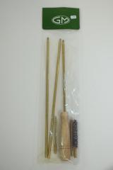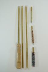 Kiväärin puhdistussarja 6,5 kaliiperille. Jäykkä 3-osainen messinkivarsi, jossa 3 harjaa (pronssiharja, öljyharja, villaharja) sekä alumiininen työntöpää.