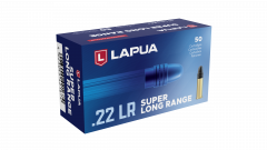 Lapua .22 LR Super Long Range -pienoiskiväärinpatruuna kilpailukäyttöön. Lähtönopeus 337 m/s. 50 kappaleen rasiassa.