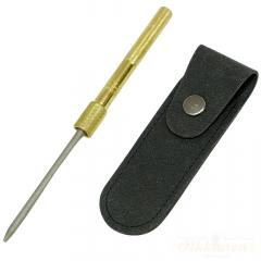 Näppärä timanttiteroitin puukkojen ja työkalujen teroitukseen. Pienen kokonsa vuoksi tasku timanttiteroitin kulkee kätevästi mukana metsällä. Pakkauksessa timanttiterä sekä nahkajäljitelmää oleva ruskea kotelo.