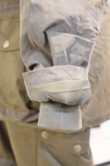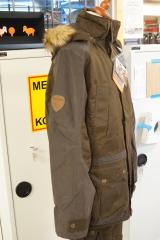 Keskiosassa isot sivutaskut. Hihoissa näppäritiukennus ja piilohihat. Vyötäröllä ja takin helmassa kiritysmahdollisuus.