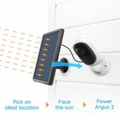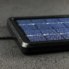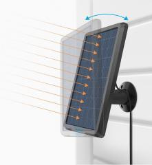 Reolink Solar Panel pitää kameran virroissa koko kesäkauden. On tärkeää suunnata paneeli kohti etelää tai lounasta ja varmistaa ettei se jää varjoon. Kameraan liitettävä kaapelin liitin on vesisuojattu. Pakkaus sisältää aurinkopaneelin lisäksi seinätelineen ja sen ruuvit.