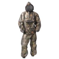 Housuissa joustava kiristysresori vyötäröllä ja lahkeessa. Takissa iso vetoketjullinen rintatasku. Musta vetoketjullinen sääskisuoja hupun etuosassa. Valmistettu 100% mikrokudotusta polyesterista.